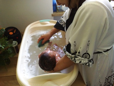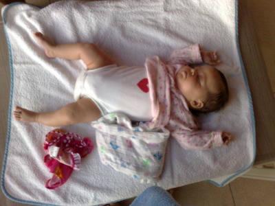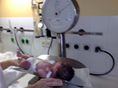 ...hier werde ich gerade gewogen, 3520 g...bin stolz auf mich!!!